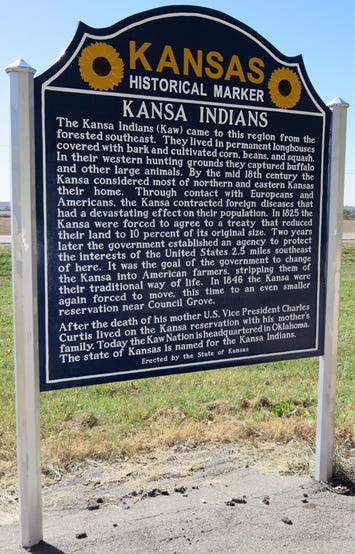 Through contact with Europeans and Americans, the Kansa contracted foreign diseases that had a devastating effect on their population. In 1825 the Kansa were forced to agree to a treaty that reduced their land to 10 percent of its original size. Two years later the government established an agency to protect the interests of the United States 2.5 miles southeast of here. It was the goal of the government to change the Kansa into American farmers, stripping them of their traditional way of life. In 1846 the Kansa were again forced to move, this time to an even smaller reservation near Council Grove.35